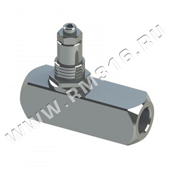 It is used to regulate the oil in one sense and have the full flow on the opposite one, it is not pressure compensated so the setting depends on the application pressure, the oil viscosity and the oil temperature. The sizes range includes several threads starting from 1/8 BSPP up to 1/2 BSPP. Setting is made by rotating the pin clockwise and vice versa by an Allen key ins erted on the upper side of the pin. Once the valve is se t, tighten the nut placed closed to the pin. This version does not have the external thread for nut tightening. It does not allow leakages. The external body is made of high resistance steel and externally protected from oxidations by zinc treatment. On request we can supply a zinc/nickel treatment to increase the oxidation resistance when the valve has poor protection or it is located in external environments.