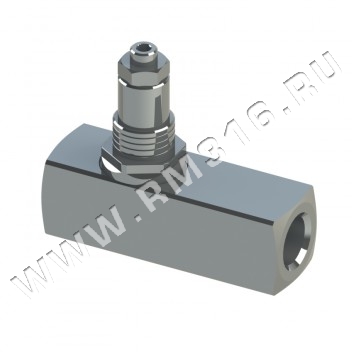 It is used to regulate the oil in one sense and have the full flow on the opposite one, it is not pressure compensated so the setting depends on the application pressure, the oil viscosity and the oil temperature. The sizes range includes several threads starting from 1/8 NPTF up to 1/2 NPTF. Setting is made by rotating the pin clockwise and vice versa by an Allen key ins erted on the upper side of the pin. Once the valve is se t, tighten the nut placed closed to the pin. This version does not have the external thread for nut tightening It does not allow leakages. The external body is made of high resistance steel and externally protected from oxidations by zinc treatment. On request we can supply a zinc/nickel treatment to increase the oxidation resistance when the valve has poor protection or it is located in external environments.