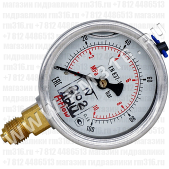 - Градуировка шкалы: 0...100 бар, 0...10 МПа- Корпус: нержавеющая сталь