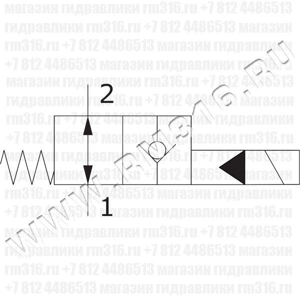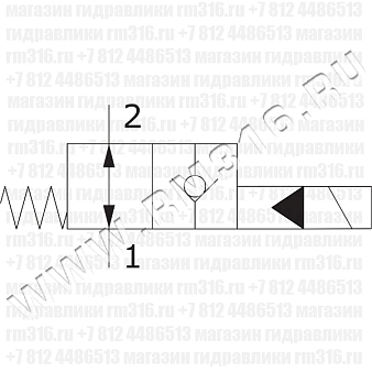 При снятом напряжении SV08-23 пропускает поток из (1) в (2) и из (2) в (1). При подаче напряжения на электромагнитную катушку гидроклапан блокирует поток из (2) в (1) и пропускает его в обратном направлении из (1) в (2).