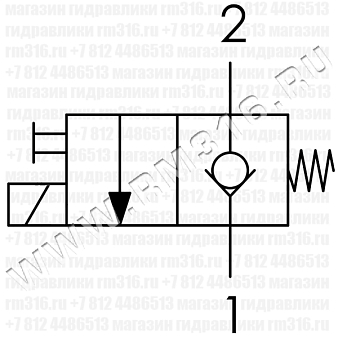При снятом напряжении MSV2-08-2NCP-M-N блокирует поток из (2) в (1) и пропускает его в обратном направлении из (1) в (2). При подаче напряжения на электромагнитную катушку гидроклапан пропускает поток из (2) в (1).
