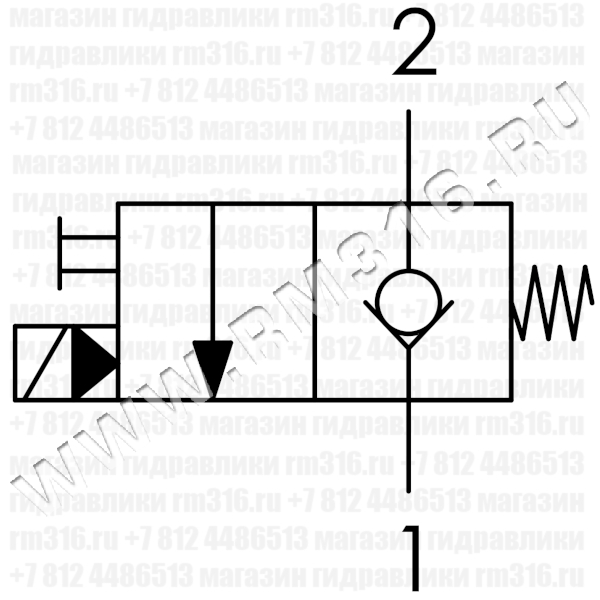 При снятом напряжении LSV6-08-2NCP-M блокирует поток из (2) в (1). При подаче напряжения на электромагнитную катушку гидроклапан пропускает поток из (2) в (1).