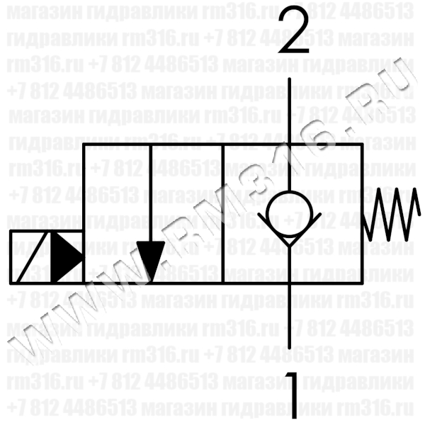 При снятом напряжении HSV10-20 блокирует поток из (2) в (1). При подаче напряжения на электромагнитную катушку гидроклапан пропускает поток из (2) в (1).