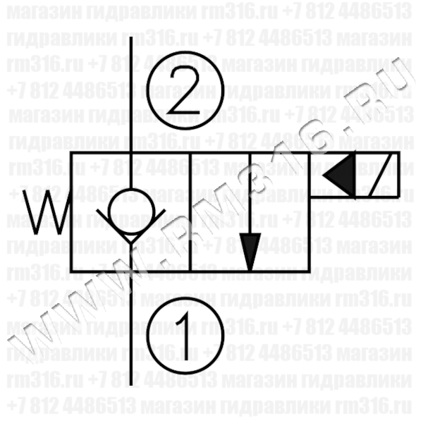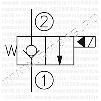 При снятом напряжении SV08-20 блокирует поток из (2) в (1). При подаче напряжения на электромагнитную катушку гидроклапан пропускает поток из (2) в (1).