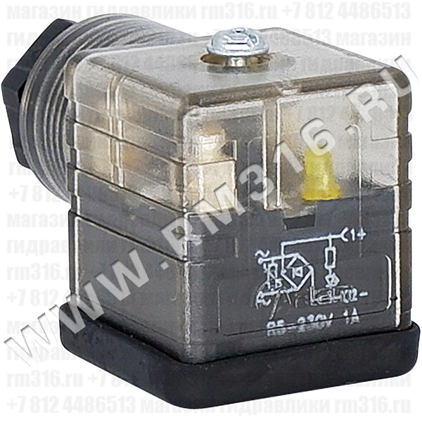 Электрический разъем с выпрямителем (штекер, коннектор) для катушки электромагнита DIN 43650 (ISO4400), трёхштырьковый. Предназначен для запитки катушек DC током AC.ТЕХНИЧЕСКИЕ ХАРАКТЕРИСТИКИ