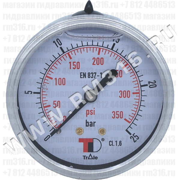 - МАНОМЕТР ГИДРАВЛИЧЕСКИЙ 63 ММ, 0 - 25 БАР / 0 - 350 PSI, ОСЕВОЕ (ПО ЦЕНТРУ СЗАДИ) ПРИСОЕДИНЕНИЕ (ITALMANOMETRI, ИТАЛИЯ)