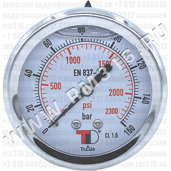 - МАНОМЕТР ГИДРАВЛИЧЕСКИЙ 63 ММ, 0 - 160 БАР / 0 - 2300 PSI, ОСЕВОЕ (ПО ЦЕНТРУ СЗАДИ) ПРИСОЕДИНЕНИЕ (BART, ИТАЛИЯ)