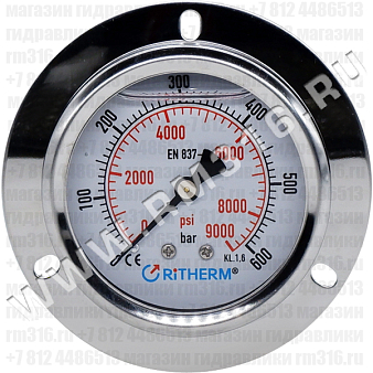 Купить манометр гидравлический 63 мм, 0 - 600 бар / 0 - 9000 psi, фланцевое присоединение (ritherm, китай)