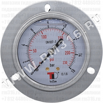 MFI6304016-DB | MFI6304016-DB Манометр гидравлический виброустойчивый (глицериновый) с фланцем, 0-16 бар, 0-230 psi, диаметр 63 мм, резьба 1/4" BSP, осевое присоединение (сзади), без первичной поверки (Dicsa / Trale, Испания) | 5 291 руб | 2 |