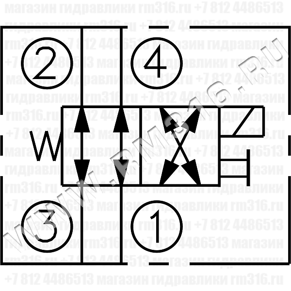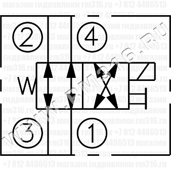 При снятом напряжении LSV2-10-4CO-M соединяет каналы (3) - (2) и (4) - (1). При подаче напряжения на электромагнитную катушку гидроклапан соединяет каналы (3) - (4) и (2) - (1).