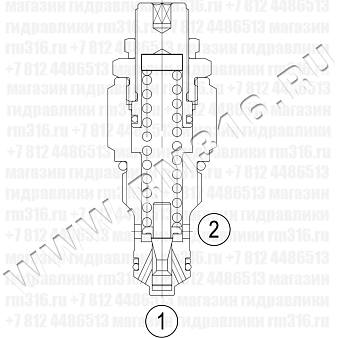 LNRV-10 блокирует поток из порта 1 в порт 2 до тех пор, пока в порту 1 не появится давление, достаточное для открытия клапана за счет преодоления заданного усилия пружины. Картридж обеспечивает плавный переход в ответ на нагрузку в обычных гидравлических контурах.