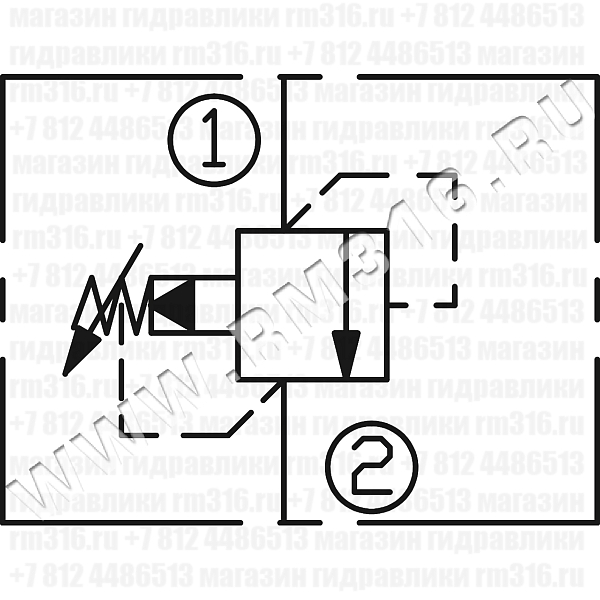 LPSRV2-10 блокирует поток из порта 1 в порт 2 до тех пор, пока в порту 1 не появится давление, достаточное для открытия клапана за счет преодоления заданного усилия пружины.