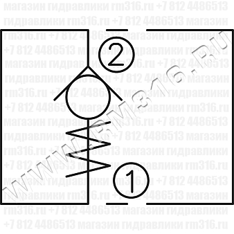LCVR-10-P обеспечивает прохождение потока от порта (2) к порту (1), при этом блокируя поток масла в обратном направлении. Жидкость не поступает в порт (1), пока в порту (2) не будет создано давление, достаточное для преодоления давления настройки пружины (давления открытия).