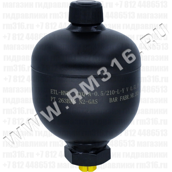 GXQ-A-0.5L/210-L-Y | GXQ-A-0.5L/210-L-Y Гидропневмоаккумулятор (аккумулятор пневмогидравлический, азотный аккумулятор) объем 0,5 л, максимальное давление 210 бар, порт клапана для зарядки азотом M28x1,5, порт для масла 1/2" BSP, не заряжен (Taizhou Eternal Hydraulic, Китай) | 8 332 руб | 10 | |