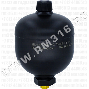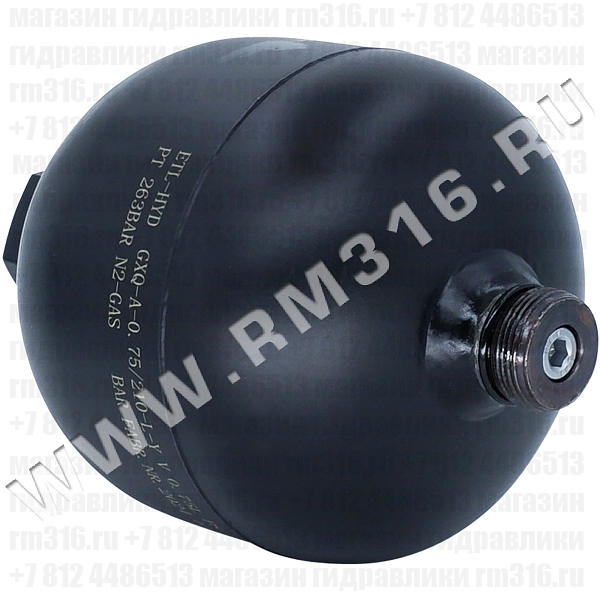 GXQ-A-0.75L/210-L-Y | GXQ-A-0.75L/210-L-Y Гидропневмоаккумулятор (аккумулятор пневмогидравлический, азотный аккумулятор) объем 0,75 л, максимальное давление 210 бар, порт клапана для зарядки азотом M28x1,5, порт для масла 1/2" BSP, не заряжен (Taizhou Eternal Hydraulic, Китай) | 9 802 руб | 10 | |