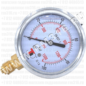 - МАНОМЕТР ГИДРАВЛИЧЕСКИЙ 63 ММ, 0 - 100 БАР / 0 - 1450 PSI, РАДИАЛЬНОЕ (СНИЗУ) ПРИСОЕДИНЕНИЕ (ITALMANOMETRI, ИТАЛИЯ)