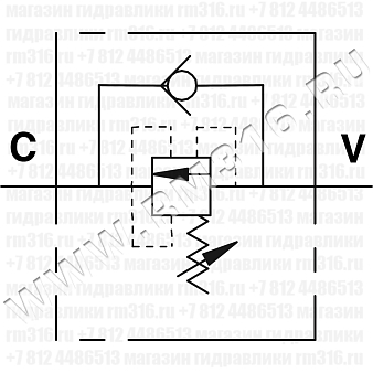 Присоедините порт V к линии нагнетания, C – к гидроцилиндру.