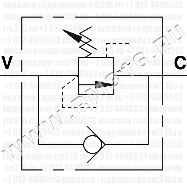 Присоедините порт V к линии нагнетания, C – к гидроцилиндру.