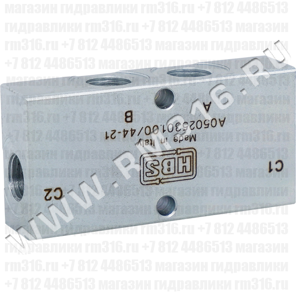 Гидрозамок A050253.01.00 служит для удержания гидравлических двигателей под нагрузкой в статическом положении. Гидравлическая жидкость блокируется в полостях C1 и C2 при отсутствии давления в линия A и B.