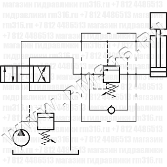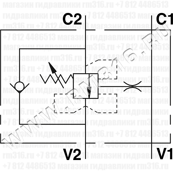 Подключите V2 к линии нагнетания, С2 – к гидроцилиндру (контролируемому порту), порты V1 - C1 к линии управления (линия с пилотным сигналом). Настройка тормозного (контрбалансного, уравновешивающего) клапана должна быть в 1,3 раза больше, чем максимальное рабочее давление, действующее в системе.