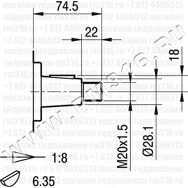 КОНИЧЕСКИЙ ВАЛ СО ШПОНКОЙ