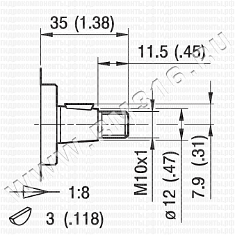 - Конический вал 1:8 со шпонкой (по умолчанию)- Стандартный европейский фланец Ø = 30 мм (73x56 мм)