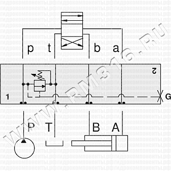 | Тип клапана: | Однолинейный, задействован канал Р, слив в канал Т