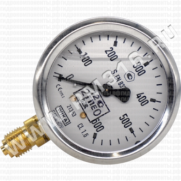 Купить 213.53.063 манометр гидравлический 63 мм, 0 - 600 бар, радиальное (снизу) присоединение (wika, германия)