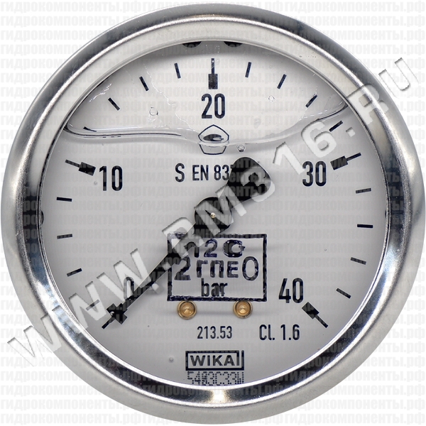 Купить 213.53.063 манометр гидравлический 63 мм, 0 - 40 бар, осевое (по центру сзади) присоединение (wika, германия)