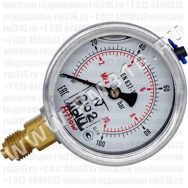 Купить g22-s-4g-63a-100bar-ve-gw манометр гидравлический 63 мм, 0 - 100 бар, 0-10 мпа радиальное (снизу) присоединение (a-flow, китай)