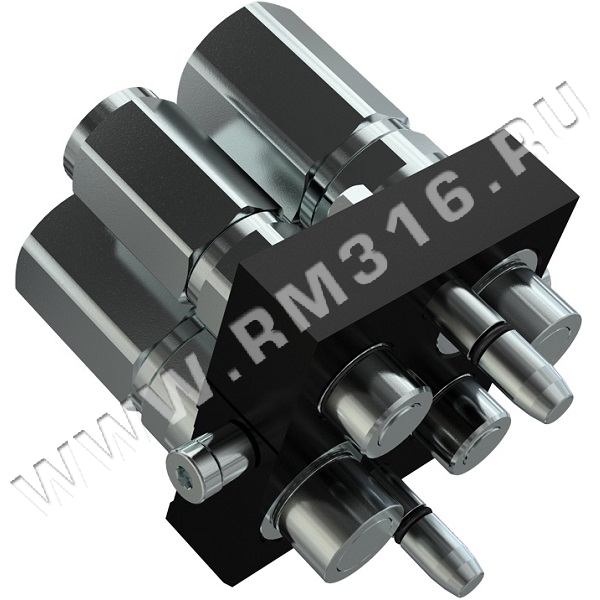 Блок соединений (мультиконнектор) MultiFaster, 4 линии, тип “G”, с механизмом смазки и цинк-никелевым покрытием. 2 линии — типоразмер 08, 2 линии — типоразмер 12.