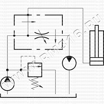 Величина потока в линии CF регулируется с помощью рукоятки после ослабления контргайки. Оставшийся поток поступает в порт EX, который можно пустить на слив в маслобак или на второго потребителя.