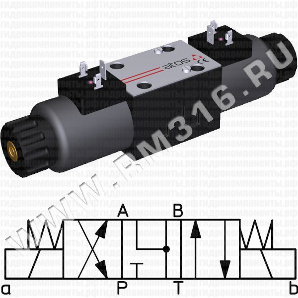 - ГИДРОРАСПРЕДЕЛИТЕЛЬ DHI-0713 (ATOS, ИТАЛИЯ), ТРЕХПОЗИЦИОННЫЙ ЧЕТЫРЕХЛИНЕЙНЫЙ CETOP 3, ДУ=6 ММ