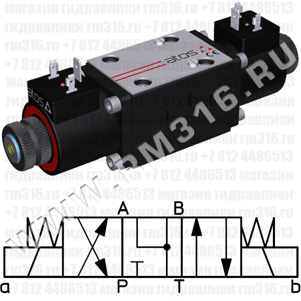 - ГИДРОРАСПРЕДЕЛИТЕЛЬ DHE-0713 (ATOS, ИТАЛИЯ), ТРЕХПОЗИЦИОННЫЙ ЧЕТЫРЕХЛИНЕЙНЫЙ CETOP 3, ДУ=6 ММ