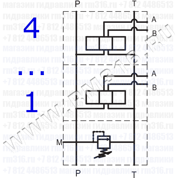 А, B - 3/8" BSP P, T - 1/2" BSP M - 1/4" BSP (М - порт под манометр, установлена заглушка) |