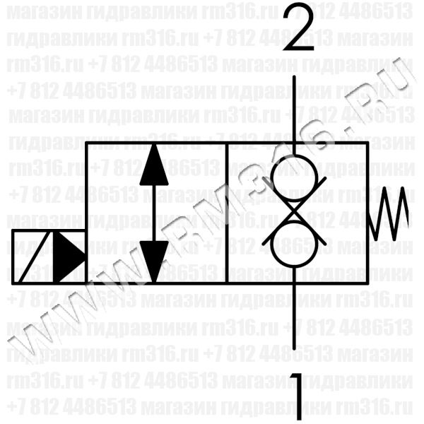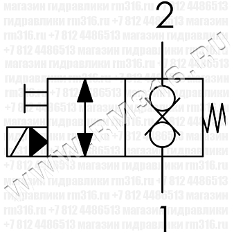 При снятом напряжении ED082B блокирует поток из (1) в (2) и из (2) в (1). При подаче напряжения на электромагнитную катушку гидроклапан пропускает поток из (1) в (2) и из (2) в (1).