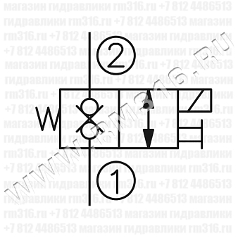 При снятом напряжении LSV-08-2NCSP-LM блокирует поток из (1) в (2) и из (2) в (1). При подаче напряжения на электромагнитную катушку гидроклапан пропускает поток из (1) в (2) и из (2) в (1).