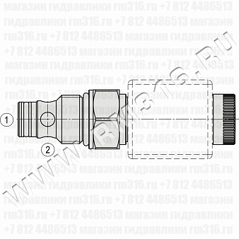 При снятом напряжении MSV-08-28 блокирует поток из (1) в (2) и из (2) в (1). При подаче напряжения на электромагнитную катушку гидроклапан пропускает поток из (1) в (2) и из (2) в (1).