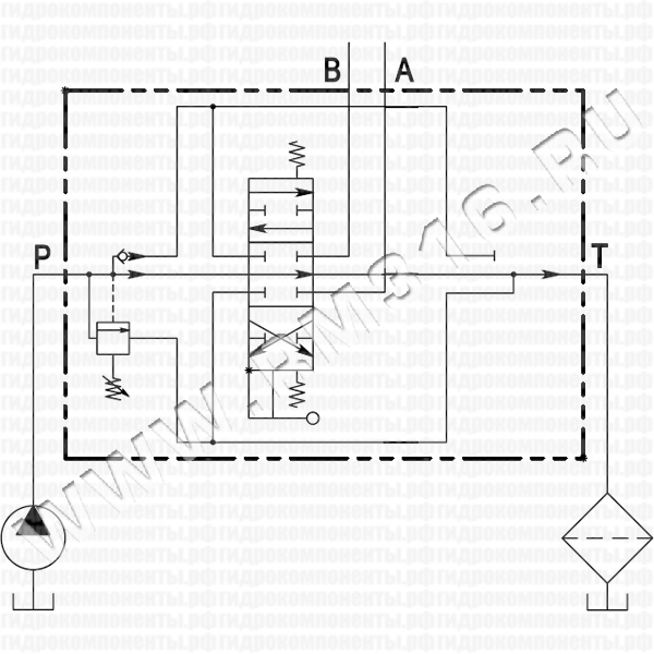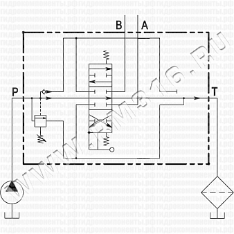 Функциональная гидравлическая схема гидрораспределителя с одним золотником типа А: