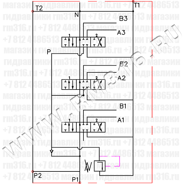 Гидравлическая схема гидрораспределителя с тремя золотниками типа А: