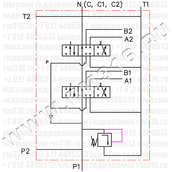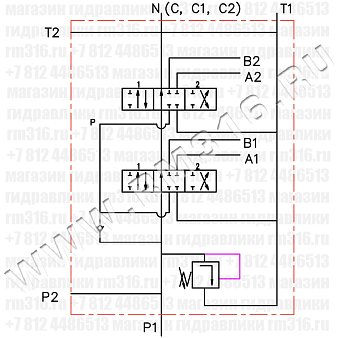 Гидравлическая схема гидрораспределителя с двумя золотниками типа А: