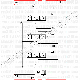 Гидравлическая схема гидрораспределителя с тремя золотниками типа А: