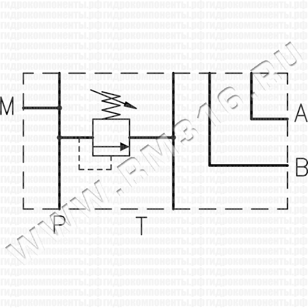 А, B, P, T - 1/2" BSP M - 1/4" BSP (М - порт под манометр, установлена заглушка) |