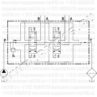 Функциональная гидравлическая схема гидрораспределителя с двумя золотниками типа А: