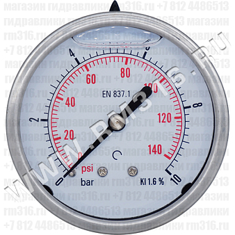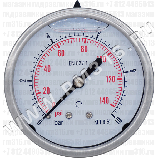 - 213.53.063 МАНОМЕТР ГИДРАВЛИЧЕСКИЙ 63 ММ, 0 - 10 БАР, ОСЕВОЕ (ПО ЦЕНТРУ СЗАДИ) ПРИСОЕДИНЕНИЕ (WIKA, ГЕРМАНИЯ)