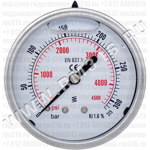 - 213.53.063 МАНОМЕТР ГИДРАВЛИЧЕСКИЙ 63 ММ, 0 - 315 БАР, ОСЕВОЕ (ПО ЦЕНТРУ СЗАДИ) ПРИСОЕДИНЕНИЕ (WIKA, ГЕРМАНИЯ)
