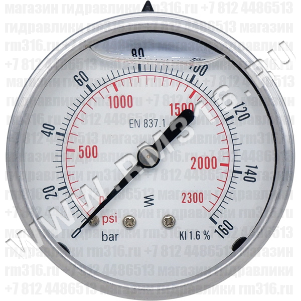 - 213.53.063 МАНОМЕТР ГИДРАВЛИЧЕСКИЙ 63 ММ, 0 - 160 БАР, ОСЕВОЕ (ПО ЦЕНТРУ СЗАДИ) ПРИСОЕДИНЕНИЕ (WIKA, ГЕРМАНИЯ)