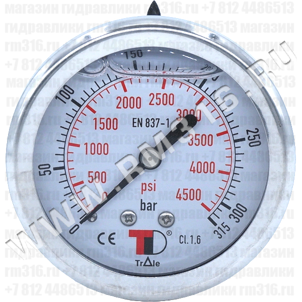 - МАНОМЕТР ГИДРАВЛИЧЕСКИЙ 63 ММ, 0 - 315 БАР / 0 - 4500 PSI, ОСЕВОЕ (ПО ЦЕНТРУ СЗАДИ) ПРИСОЕДИНЕНИЕ (BART, ИТАЛИЯ)