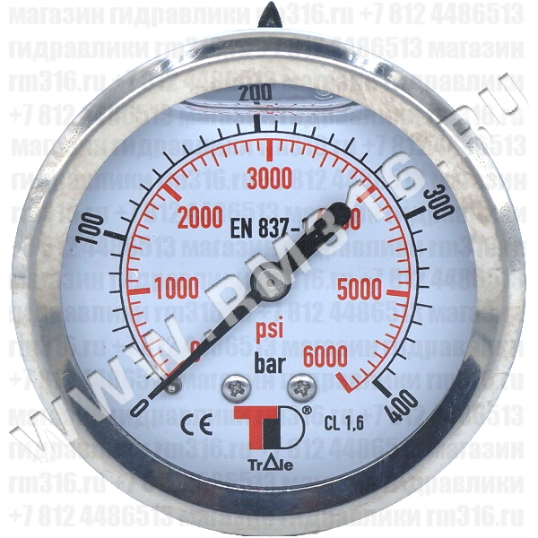 - МАНОМЕТР ГИДРАВЛИЧЕСКИЙ 63 ММ, 0 - 400 БАР / 0 - 5800 PSI, ОСЕВОЕ (ПО ЦЕНТРУ СЗАДИ) ПРИСОЕДИНЕНИЕ (ITALMANOMETRI, ИТАЛИЯ)