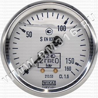 Купить 213.53.063 манометр гидравлический 63 мм, 0 - 160 бар, осевое (по центру сзади) присоединение (wika, германия)